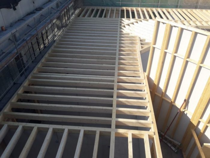 - Sistema a telaio: costituito da montanti verticali e orizzontali, con pannellature e tavolati di contenimento e irrigidimento strutturale con all’interno isolante in fibre naturali.
